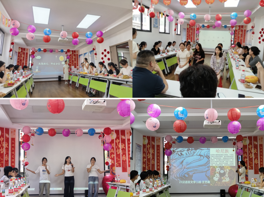 活动伊始,大屏幕上播放的中秋节庆主题视频,通过生动的画面和深情的解说,带领师生们回顾了中秋佳节的历史渊源、传统习俗与文化内涵,唤起了大家对团圆与家国情怀的深切共鸣。随后,趣味互动环节将现场气氛推向高潮。在“击鼓传花”游戏中,同学们随着鼓点传递花束,欢声笑语不断;在别开生面的中秋主题“谁是卧底”游戏中,大家围绕“月饼”“吴刚”等关键词展开智慧较量,既考验反应力,也加深了对中秋文化的理解。