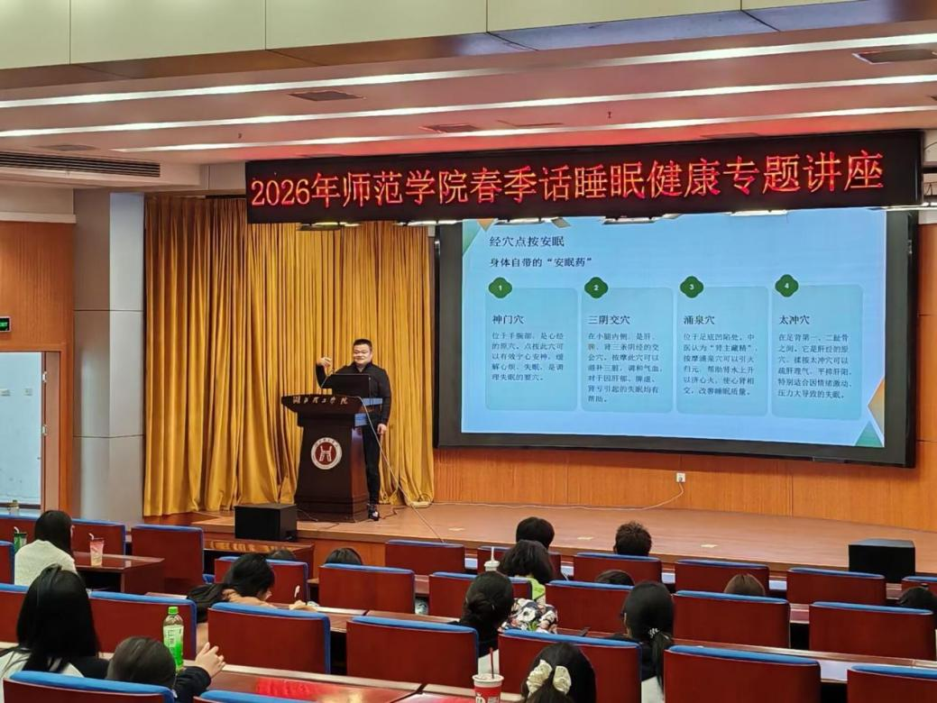 此次春季睡眠主题健康讲座,是学院推进系列促进学生身心健康举措之一。后期,师范学院将采取各种方式持续推进相关促进学生身心健康活动,全方位守护学子成长,助力每一位学生以健康体魄、昂扬姿态,在求学路上稳步前行,绽放青春光彩。(通讯员 吴晓璇 袁丽莎)