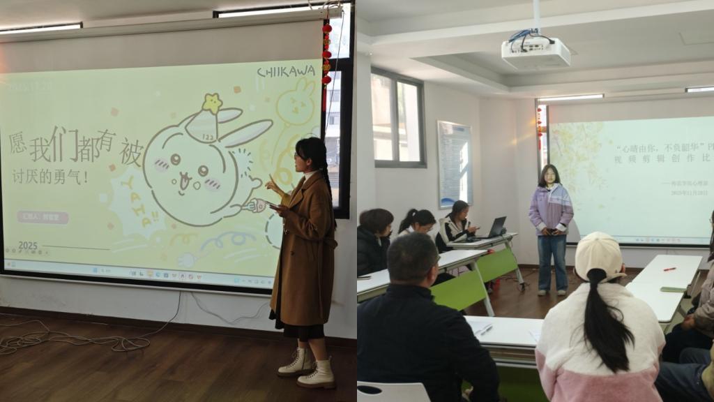 本网消息 为丰富校园心理健康教育形式,提升学生创意表达与数字媒体应用能力,师范学院近日在求知一站式学生社区204室成功举办“心晴有你,不负韶华”PPT/视频剪辑创作比赛。活动特邀网络与新媒体专业老师陈朝晖、心理部指导老师吴晓璇担任评委,为参赛选手提供专业点评与针对性指导。
