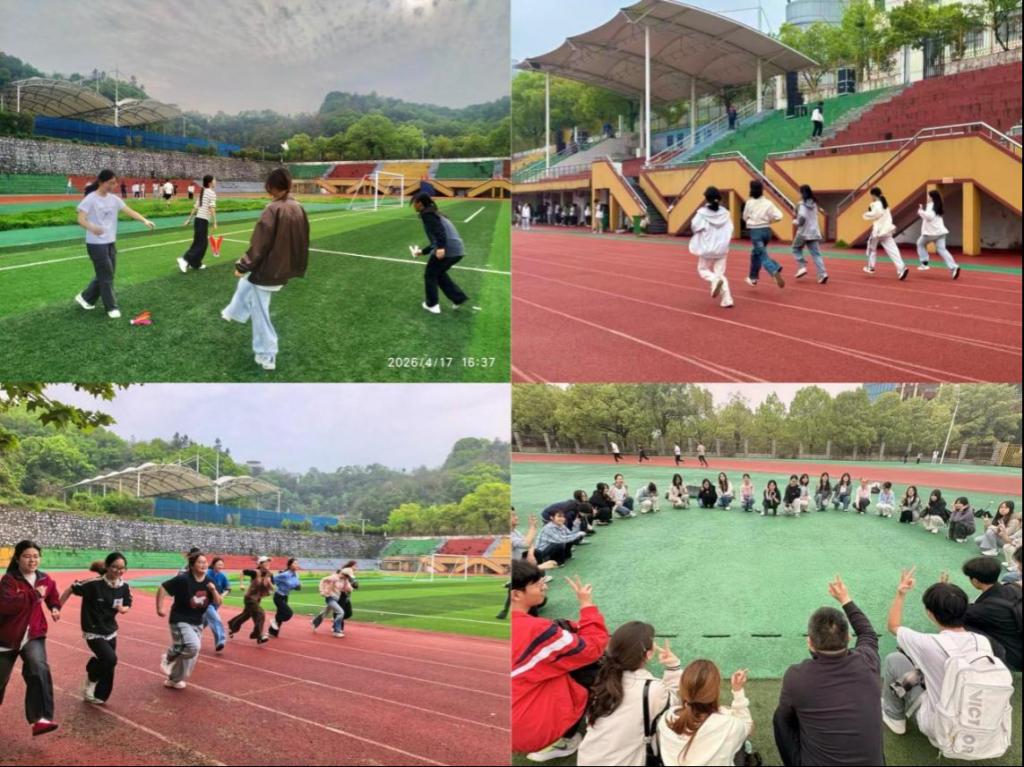 本次班级趣味运动会设置三分钟踢毽子、一分钟跳绳、100 米短跑等趣味项目,兼顾竞技性与趣味性。赛场上,同学们精神饱满、奋勇争先,全力展现青春活力;辅导员、班主任们化身 “最佳队友”,全程参与、加油助威,与学生并肩互动,师生默契十足、其乐融融,欢声笑语洒满赛场。