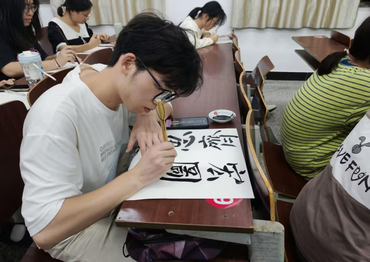 安全防诈知识竞赛,围绕法律维权、安全教育和防范诈骗三大主题,通过必答、抢答等互动形式,生动普及法律常识,增强同学们的法治意识与反诈骗能力;“翰墨书香”书法活动,同学们通过在宣纸上一笔一画静心临摹,从横竖撇捺的书写中感受汉字的魅力与传统文化的深厚底蕴;“心灵驿站”活动通过压力绘画、明信片寄语等环节,引导学生释放情绪、传递温暖,营造出关注心理健康、传递校园正能量的良好氛围。