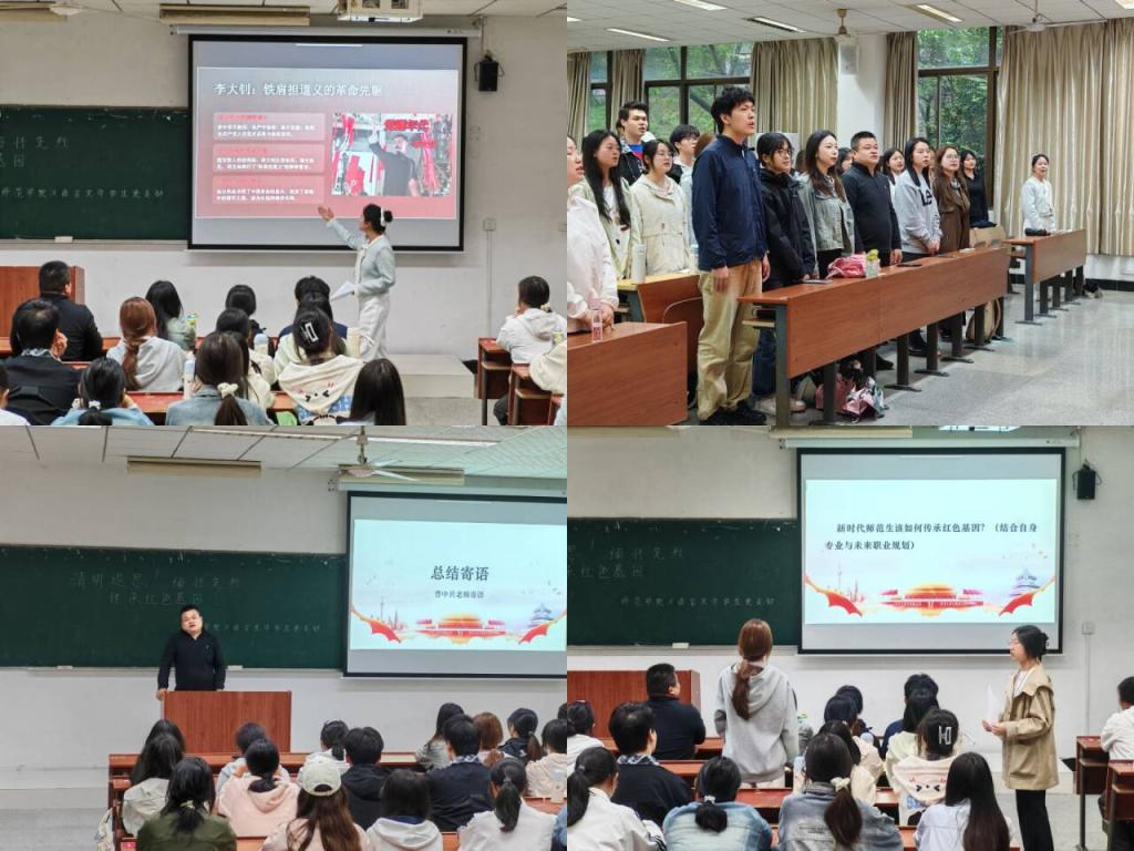 本网消息 为缅怀革命先烈、赓续红色血脉,厚植青年学生爱党爱国情怀,四月,师范学院各学生党支部结合自身特色,开展形式多样的“清明追思,缅怀先烈,传承红色基因”主题思政教育活动,引导全体党员在追思中感悟初心,在实践中担当使命。
