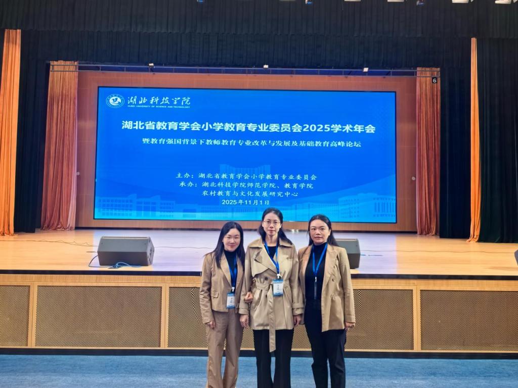本网消息11月1日,湖北省教学学会小学教育专业委员会2025年学术年会在湖北咸宁成功举行。我校师范学院副院长刘燕老师、小学教育专业教师王乐和罗司典参加了此次会议。