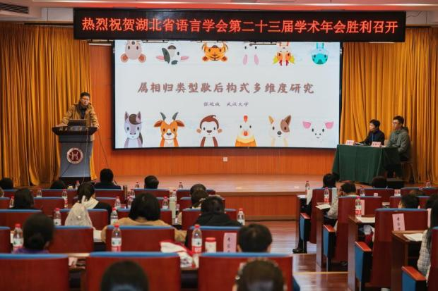 11月16日主旨报告环节,湖北大学张鹏飞教授以《面向需求革新国际中文教育内涵外延并聚合教学资源——基于湖北省和湖北大学国际中文教育实际》为题,剖析了湖北省国际中文教育的现状与革新路径;武汉大学张延成教授做了题为《属相归类型歇后构式多维度研究》的报告,分析了属相归类型这一类高能产的特色构式;华中师范大学王洪涌教授在报告《释〈离骚〉“筳篿”》中从字形、读音、语境以及楚地占卜风俗等方面对“筳篿”的语义内涵进行了深入解读;中南民族大学谢荣娥教授在《再释“敖”与“莫敖”》中运用历史比较语言学方法,对“敖”及“莫敖”之涵义进行了重新考释;湖北理工学院胡邦岳教授在报告《类型学视角下汉语“限定语+ N”语序研究》中从类型学视角分析汉语“限定与+N”语序规律,揭示了该语序模式的历史稳定性与动态适应性。华中科技大学陈禹副教授在报告《缩放象似:构式竞争中的同者与他者》中创造性地将他者性理论引入汉语词语辨析,在构式竞争的视角下分析汉语词汇中他者性对立模式。