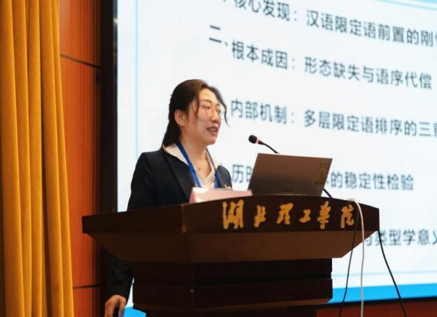 在开幕式后的主旨报告环节,五位专家依次作了报告。武汉大学赫琳教授以《数智技术驱动的中国语言学话语体系建设研究》为题,探讨数字化时代语言学话语体系的构建路径;湖北师范大学李治平教授在报告《副词“明明”的话语关联与语义情态》中探讨了副词“明明”在话语衔接中的语义构建机制;黄冈师范学院陈淑梅教授在报告《从语言接触看鄂东方言的空间量范畴及其隐喻》中深度解析了方言接触中的空间量范畴的认知表达;华中科技大学刘根辉教授以《数字人文视域下的〈册府元龟〉研究》为题,梳理了古籍校勘中的异体字演变规律;三峡大学吴芳教授则以《传统建筑学术语的空间认知表征》为题,探讨建筑术语与空间认知的映射关系。五场报告兼具理论深度与实证价值,引发与会学者热烈讨论。
