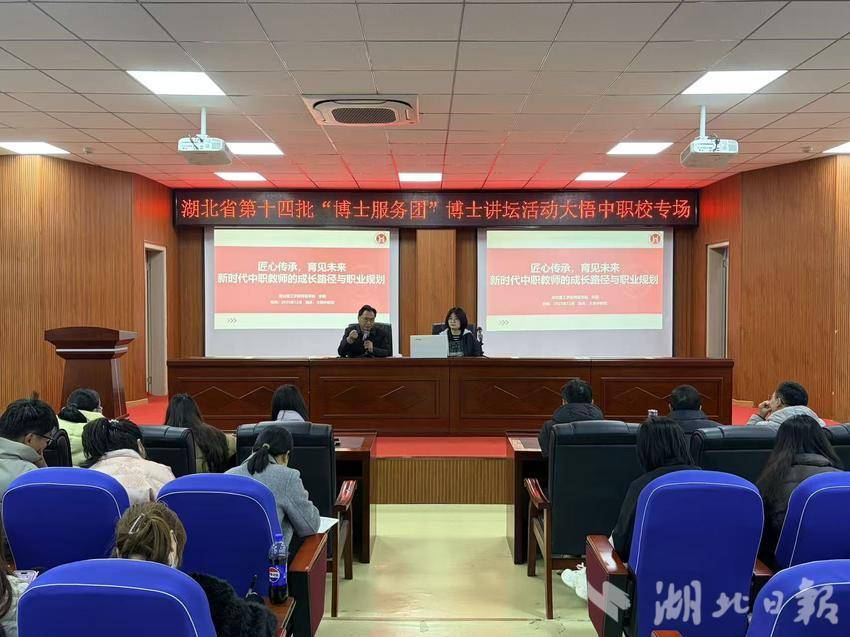 作为博士服务团成员和地方青年观察员,李翮博士积极将高校视野与基层观察相结合。2025年12月,她面向学校引进人才及青年教师,举办了题为《匠心传承,育见未来:新时代中职教师的成长路径与职业规划》的专题讲座。讲座从角色定位、师德修养、专业发展、行动规划四个维度,结合具体案例,为青年教师的职业成长提供了清晰路径与实用建议,激发了教师队伍的内生发展动力,得到了与会教师的热烈反响。
