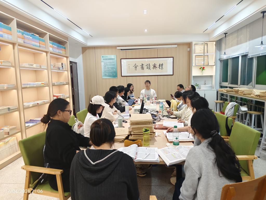 本网消息2026年4月17日(周五)晚19点,“朴斋读书会”第七十六期活动在师范学院图书室举行。本次活动由朱克理老师主持,刘会龙、田彧两位老师协助,来自汉语言文学、小学教育专业的14名学生参与。本期由23汉本2班肖静茵同学领读《毛诗正义·郑风·大叔于田》。